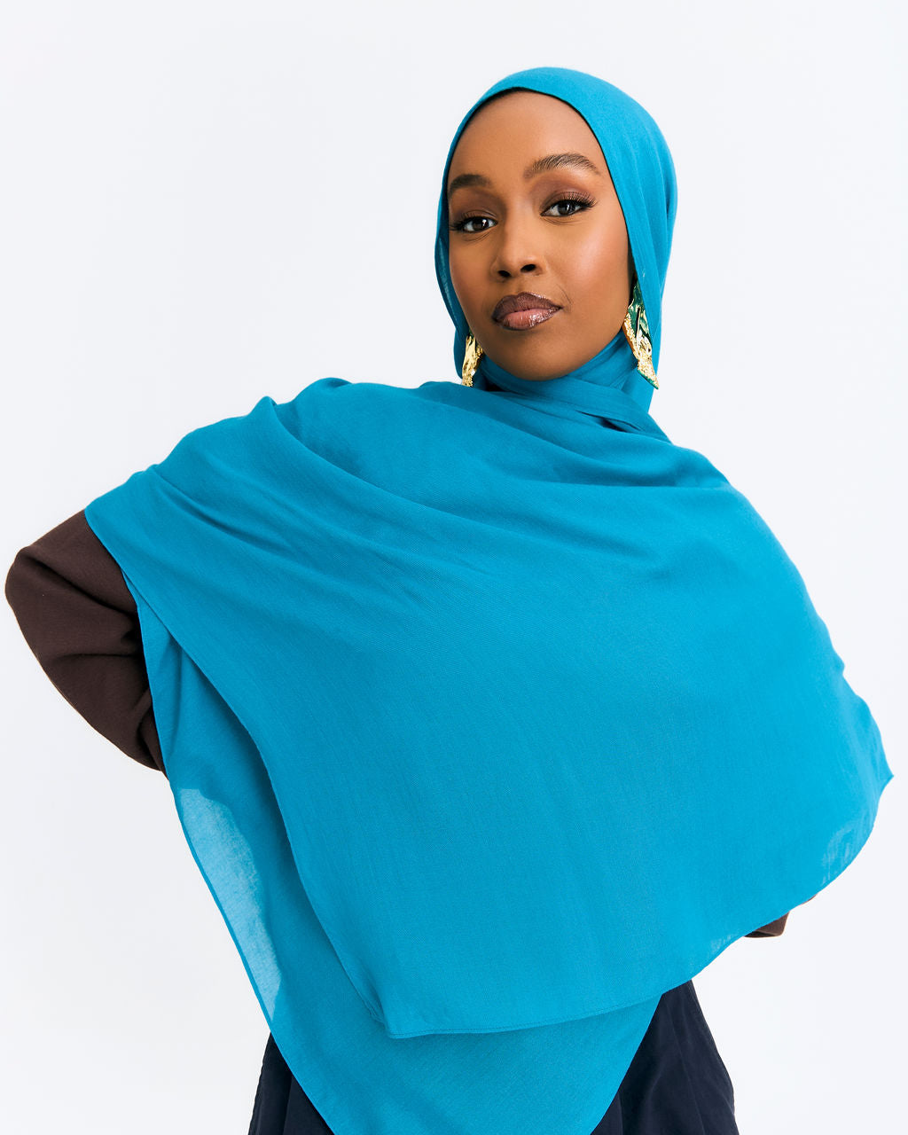 This rich teal modal hijab has deep blue-green undertones. Cool, bold, and unapologetically sharp. It’s buttery soft, drapes beautifully, and lays perfectly on your head. Made from Anar’s Butter Modal fabric.